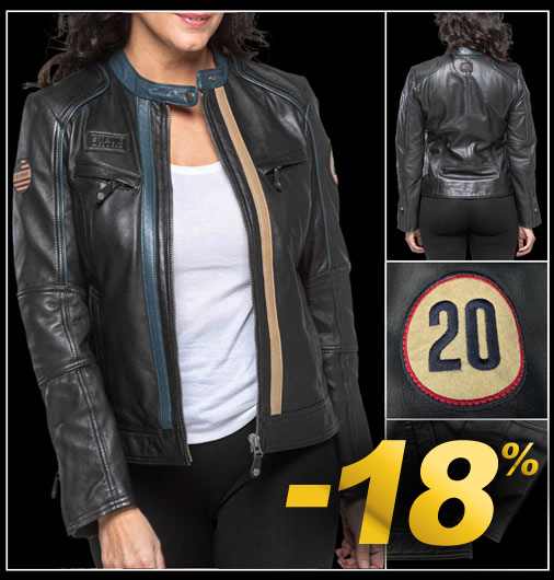 Veste en Cuir Steve McQueen Jutta Matière Cuir de mouton - Couleur Noir - 2 poches latérales 2 poches sur la poitrine - 2 poches intérieur Col boutonné - Intérieur en coton agréable à porter Classic Legend Motors 27947-1504