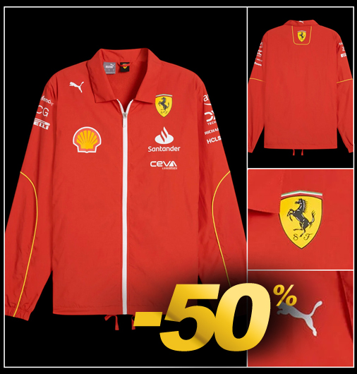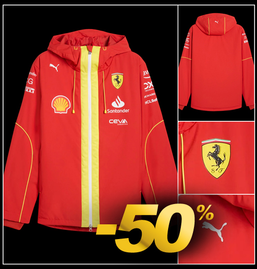 Veste à capuche homme Ferrari F1 Matière 100% Nylon imperméable - Fermeture zippée - Capuche réglables 2 poches latérales - Couleur Rouge / Jaune Puma 701230152-001