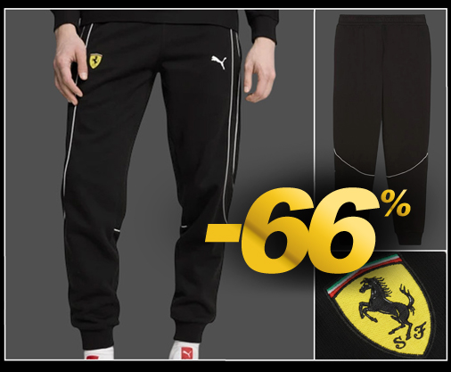Pantalon homme Ferrari Matière 66% Coton / 34% Polyester - Couleur Noir - Taille élastiquée et cordon de serrage 2 poches latérales zippées - Chevilles côtelées Puma 701231828-001
