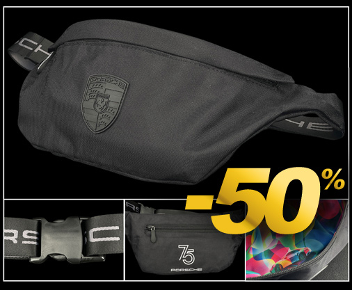 Sac Banane Porsche 75 ans Matière 100% Polyester - Couleur Noir - Dimensions 15 x 30 x 10 cm Compartiment principal spacieux - 1 petite poche zippée à l'arrière Porsche WAP0352230RPGB