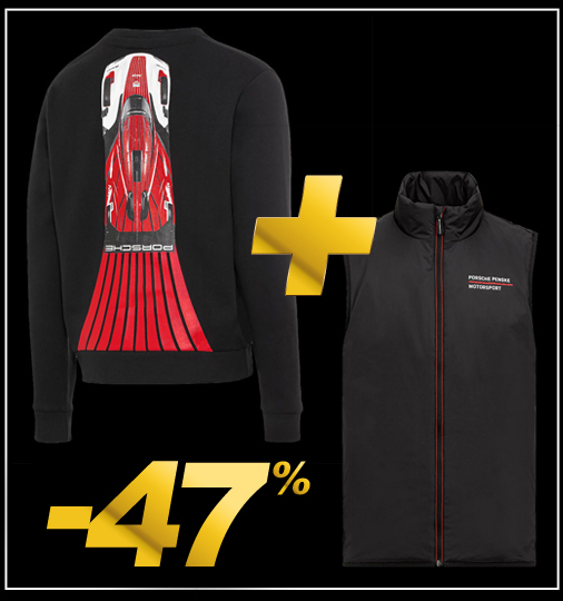 Pull + Veste sans manches Porsche 963 Penske Matière Pull 100% Coton - Matière Veste 100% Polyester Couleur Noir / Rouge - Fermeture principale zippée 2 poches latérales - 1 poche intérieur Porsche WAP190PPMS + WAP193RPMS