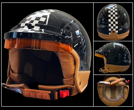 Casque motif Damier Coque en matière thermoplastique - Norme E3 - Homologué 2025 Renfort et Habillage intérieur en cuir synthétique perforé Housse incluse - Couleur Noir / Blanc / Beige 349,95 € TTC / Incl. Taxes