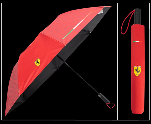 Parapluie compact Ferrari Ouverture manuelle - Poignée avec dragonne Housse incluse - Couleur Rouge / Noir Puma 701227740-001 39,95 € TTC / Incl. Taxes