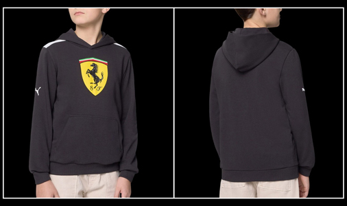 Hoodie enfant Ferrari Matière Coton majoritaire - Capuche doublée Poche kangourou - 2 Couleurs disponibles Puma 701232791 69,95 € TTC / Incl. Taxes