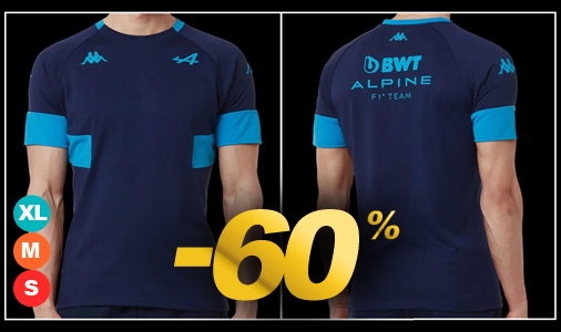 T-shirt homme Alpine F1 - Tailles S / M / XL seulement Couleur Bleu marine / Bleu - Matière 60% Coton / 40% Polyester Kappa 311J6CW-A07