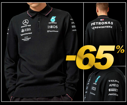 Polo Manches Longues homme Mercedes-AMG F1 Matière 70% Jersey de coton / 30% Laine - Couleur Noir Mercedes-AMG 701224811-001