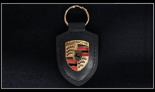 Porsche Keyring Black Leather Crest