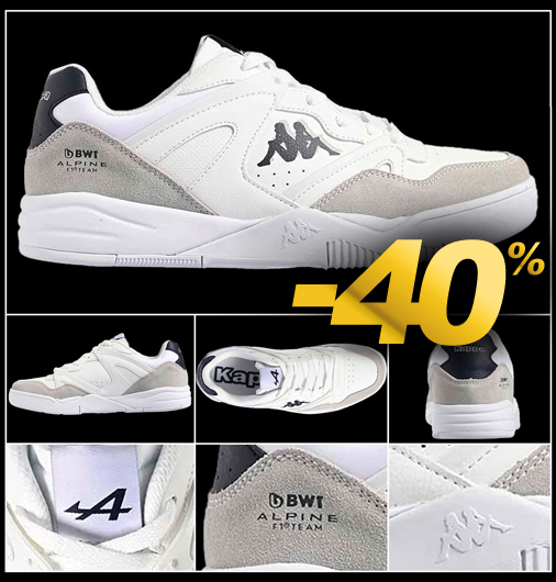 Chaussures homme Alpine F1 Matière 20% Cuir / 20% Polyuréthane / 60% Polyester - Couleur Noir / Blanc Tige en maille transpirante et cuir - Semelle extérieure en caoutchouc Kappa 371D11W-A03