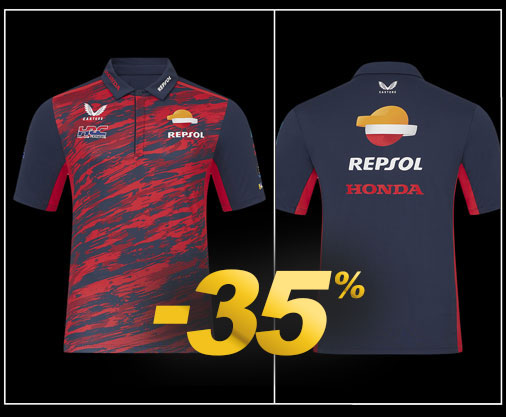 Polo homme Marc Marquez Honda Repsol Matière 88% Polyester / 12% Elasthane - Couleur Bleu Iris noir / Rouge flame Honda Racing TU8068RE-105
