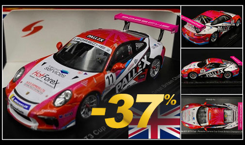 Porsche 911 GT3 Cup n°7 - Vainqueur Carrera Cup Grande Bretagne 2018 1/43 - Spark UK004 Edition limitée - 300 exemplaires numérotés