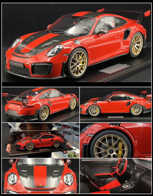 Porsche 911 GT2 RS Weissach package 2018 Rouge indien 1/8 - Minichamps 800621002 Modèle en résine - Vitrine incluse - Plaque gravée sur socle Edition limitée - 99 exemplaires numérotés 1995,95 € TTC / Incl. Taxes