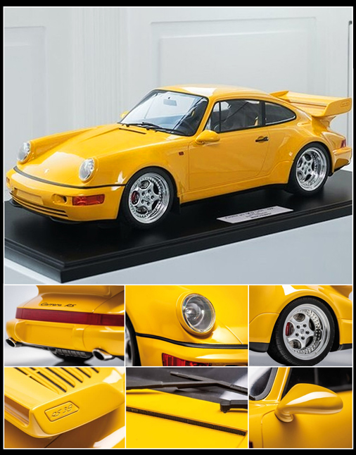 Porsche 911 Carrera RS 3.8 1994 Jaune Vitesse 1/8 - Minichamps 800650000 Modèle en résine - Vitrine incluse - Plaque gravée sur socle Edition limitée - 164 exemplaires numérotés 1495,95 € TTC / Incl. Taxes