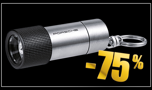 Lampe de poche LED Porsche Design Puissance 80 Lumen - Avec anneau porte-clés Rechargeable sur allume-cigares - Dimensions 6 x 2 cm Corps de lampe en acier inoxydable et aluminium Porsche Design WAP0501550G