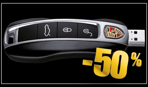 Clé USB Porsche Clé de contact Capacité de stockage 16 Go - Prise USB rétractable Couleur noir / chrome - Porsche WAP0507150K