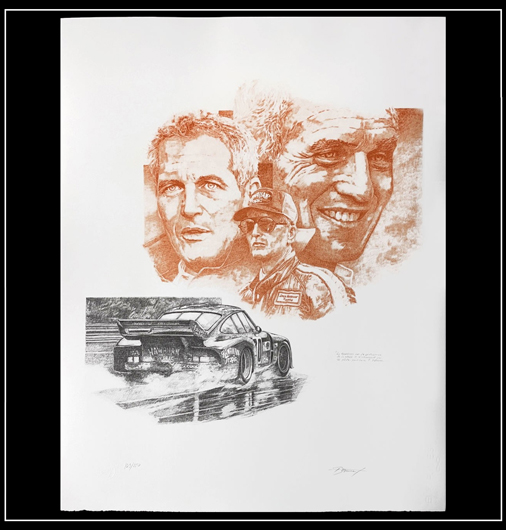 Reproduction d'une peinture originale de Patrick Brunet - Paul Newman Porsche 935 58 x 75 cm - Sur papier d'art certifié et authentifiée Edition limitée - 250 exemplaires numérotés 99,95 € TTC / Incl. Taxes