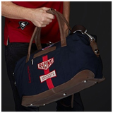 Travel bag Gulf Leather / Cotton - 41x33x20 cm Navy Blue / Red Stripe 198 € TTC / Incl. Taxes