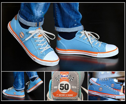 Men's Shoes Gulf Style Race Driver 100% Leather / rubber sole Gulf Blue / Orange 189 € TTC / Incl. Taxes