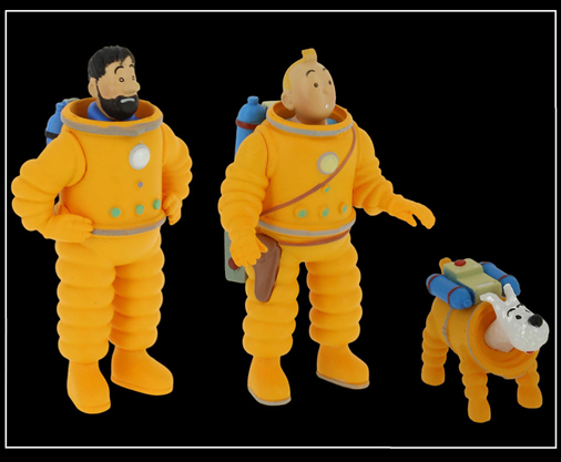 Trio Tintin, Milou & Haddock cosmonautes - On a marché sur la Lune Reproduction en résine de 8 cm de haut qualité premium Tintinimaginatio 42507 + 42506 + 42505