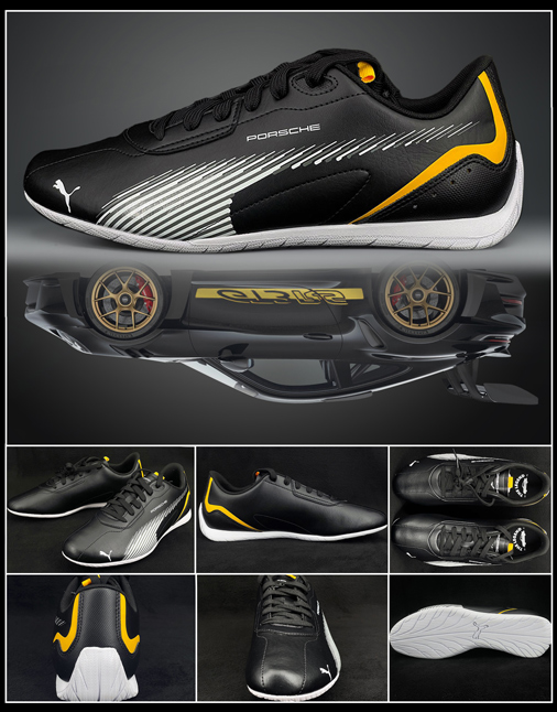 Chaussures homme Porsche Turbo by Puma Matière Simili Cuir - Semelle Caoutchouc - Couleur Noir - Lacets plats Doublure Textile - Renfort caoutchouc au talon Puma 308087-01 99,95 € TTC / Incl. Taxes