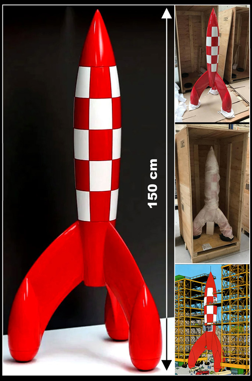La Fusée de Tintin - On a marché sur la Lune Reproduction en résine de 150 cm de haut - Dimensions 71 x 64 x 150 cm - Poids 40 kg Edition 2019 avec certificat d'authenticité numéroté Tintinimaginatio 46999 3299,95 € TTC / Incl. Taxes