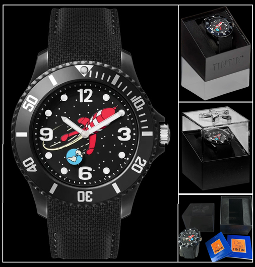 Montre Tintin - On a marché sur la Lune Mouvement Analogique Quartz - Boitier 48 mm - Bracelet Silicone noir Verre minéral antireflets - Étanchéité 10 ATM - Aiguilles fluoréscentes Tintinimaginatio 82437 99,95 € TTC / Incl. Taxes