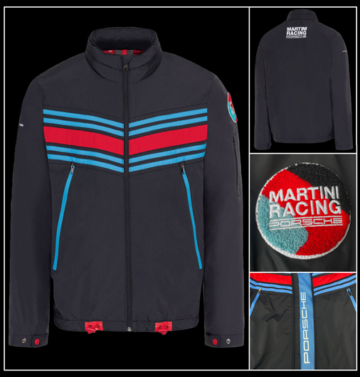 Veste homme Porsche Martini Racing Matière 100% Polyester - Fermeture principale zippée - Couleur Bleu Marine 1 poche sur la manche - 2 grandes poches latérales - taille réglable par cordon de serrage Porsche WAP556P0MR 149,95 € TTC / Incl. Taxes