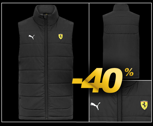 Veste sans manches homme Ferrari F1 Matière 100% Polyester - Couleur Noir Fermeture zippée - 2 poches latérales zippées Ferrari 701223472-001