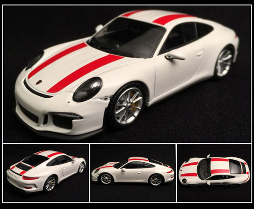 991 R 2016 Blanche / Bandes latérales rouges 1/43 - Minichamps 410066221 Edition limitée - 336 exemplaires 59,95 € TTC / Incl. Taxes