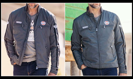 Veste homme - Gulf Racing Coupe sportive courte col droit Double bande noire sur les manches Divers logos vintage brodés Gulf, Heuer sur la poitrine et les manches Extémité des manches zippées et boutonnées 4 poches extérieures zippées Poche intérieure zippée Couleur gris Matière 100% Polyester Doublure assortie 100% Polyester avec décoration Gulf Le Mans 129 € TTC / Incl. Taxes |