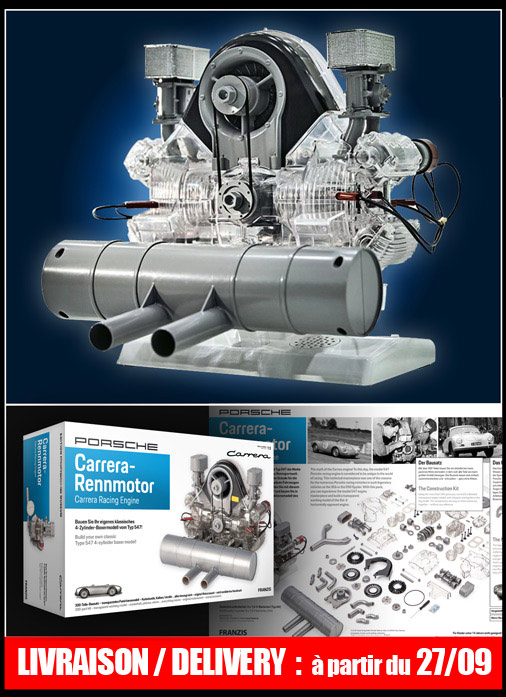Also enjoy a new version of the Porsche 356 A coupé Carrera with its famous engine, engine that you can still preorder in a kit at scale 1/4. It will be delivered in the end of september.
